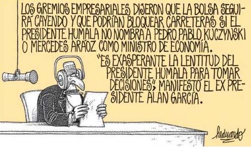 Ello a su vez ha estado matizado, por titulares periodísticos de la prensa manipuladora peruana, haciendo entrever que dichas desregulaciones continuarían hasta el momento aquél, en que se defina a las personas encargadas de manejar las funciones de la económica nacional.
