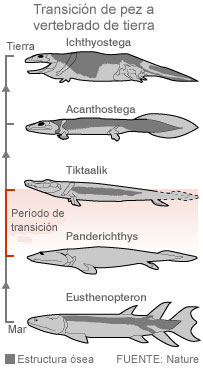 aletas lobuladas con los primeros tetrápodos anfibios. Pero los pasos de esa importante transformación